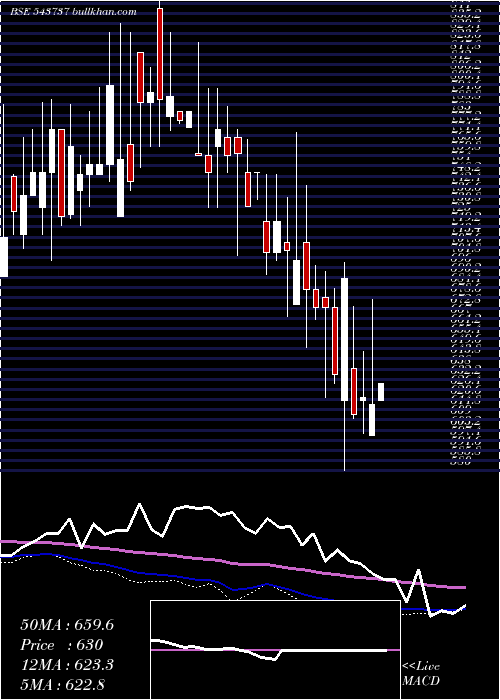 | Date | Closing | Open | Range | Volume | Fri 26 December 2025 | 629.95 (1.6%) | 629.95 | 629.95 - 629.95 | 0.5 times | Tue 23 December 2025 | 620.00 (-0.4%) | 620.00 | 620.00 - 620.00 | 4.95 times | Mon 22 December 2025 | 622.50 (0.81%) | 620.05 | 620.00 - 625.00 | 0.25 times | Fri 19 December 2025 | 617.50 (-0.42%) | 620.10 | 615.00 - 620.10 | 0.2 times | Thu 18 December 2025 | 620.10 (0.99%) | 625.00 | 620.05 - 625.00 | 0.35 times | Wed 17 December 2025 | 614.05 (1.66%) | 614.05 | 614.05 - 614.05 | 0.05 times | Tue 16 December 2025 | 604.00 (-2%) | 604.00 | 604.00 - 604.00 | 0.15 times | Mon 15 December 2025 | 616.30 (-0.88%) | 600.00 | 600.00 - 677.95 | 0.4 times | Fri 12 December 2025 | 621.80 (-2.39%) | 621.05 | 621.05 - 637.00 | 0.2 times | Thu 11 December 2025 | 637.00 (3.19%) | 632.70 | 614.00 - 637.00 | 2.95 times | Wed 10 December 2025 | 617.30 (-0.48%) | 630.00 | 601.00 - 630.00 | 2.85 times |