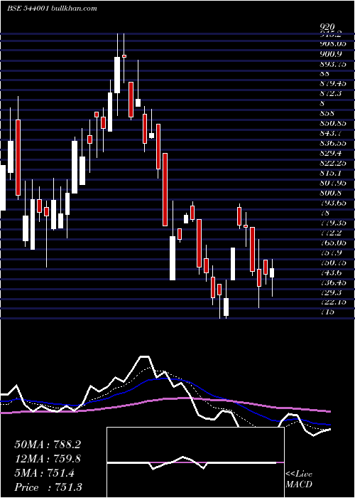 | Date | Closing | Open | Range | Volume | Mon 29 December 2025 | 738.20 (-1.42%) | 750.60 | 723.00 - 772.00 | 1.357 times | Fri 26 December 2025 | 748.85 (-4.12%) | 781.00 | 746.05 - 781.00 | 0.4593 times | Wed 24 December 2025 | 781.00 (-0.16%) | 782.25 | 767.00 - 791.50 | 0.2714 times | Tue 23 December 2025 | 782.25 (2.13%) | 794.90 | 780.00 - 797.80 | 0.9395 times | Mon 22 December 2025 | 765.90 (5%) | 743.10 | 743.00 - 765.90 | 0.9395 times | Fri 19 December 2025 | 729.45 (-0.39%) | 717.05 | 715.00 - 743.00 | 1.3152 times | Thu 18 December 2025 | 732.30 (0.28%) | 740.00 | 715.05 - 740.00 | 0.8768 times | Wed 17 December 2025 | 730.25 (-2.38%) | 745.00 | 725.00 - 753.00 | 0.8559 times | Tue 16 December 2025 | 748.05 (-0.54%) | 758.00 | 742.00 - 768.00 | 1.1482 times | Mon 15 December 2025 | 752.10 (-4.37%) | 786.50 | 747.20 - 786.50 | 1.8372 times | Fri 12 December 2025 | 786.50 (-0.39%) | 795.95 | 785.00 - 799.00 | 0.2505 times |