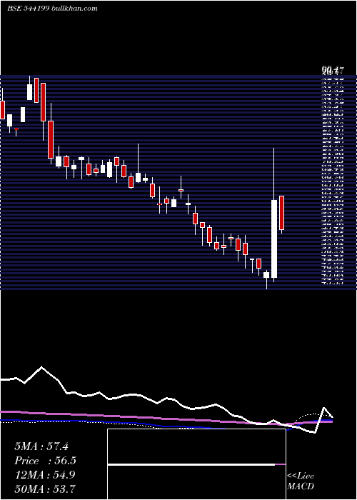 | Date | Closing | Open | Range | Volume | Wed 24 December 2025 | 56.54 (1.29%) | 55.99 | 55.99 - 59.00 | 0.2204 times | Tue 23 December 2025 | 55.82 (-7.12%) | 58.25 | 55.70 - 61.80 | 0.7576 times | Mon 22 December 2025 | 60.10 (-4.65%) | 64.00 | 59.06 - 64.00 | 0.2755 times | Fri 19 December 2025 | 63.03 (-6.87%) | 69.95 | 60.92 - 74.44 | 4.8347 times | Thu 18 December 2025 | 67.68 (20%) | 61.00 | 58.00 - 67.68 | 2.314 times | Wed 17 December 2025 | 56.40 (20%) | 48.94 | 48.50 - 56.40 | 0.9229 times | Tue 16 December 2025 | 47.00 (1.56%) | 46.28 | 45.00 - 47.49 | 0.2066 times | Mon 15 December 2025 | 46.28 (-1.53%) | 46.00 | 45.21 - 46.35 | 0.124 times | Fri 12 December 2025 | 47.00 (0%) | 45.80 | 45.80 - 47.50 | 0.0826 times | Thu 11 December 2025 | 47.00 (2.4%) | 44.00 | 44.00 - 47.13 | 0.2617 times | Wed 10 December 2025 | 45.90 (2.57%) | 46.50 | 44.62 - 46.50 | 0.1791 times |