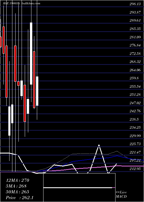 | Date | Closing | Open | Range | Volume | Fri 26 December 2025 | 262.05 (-2.76%) | 239.75 | 239.75 - 279.00 | 1.1453 times | Mon 22 December 2025 | 269.50 (0%) | 269.50 | 269.50 - 269.50 | 0.0202 times | Fri 19 December 2025 | 269.50 (1.03%) | 259.00 | 241.90 - 269.50 | 0.9185 times | Thu 18 December 2025 | 266.75 (0%) | 266.75 | 266.75 - 266.75 | 0.009 times | Wed 17 December 2025 | 266.75 (-2.73%) | 266.00 | 265.05 - 270.80 | 1.6932 times | Tue 16 December 2025 | 274.25 (-9.67%) | 318.95 | 274.25 - 318.95 | 3.2046 times | Mon 15 December 2025 | 303.60 (7.17%) | 301.00 | 299.95 - 321.30 | 1.6057 times | Fri 12 December 2025 | 283.30 (1.16%) | 286.00 | 282.55 - 289.90 | 0.8017 times | Thu 11 December 2025 | 280.05 (10.76%) | 253.35 | 252.85 - 287.80 | 0.5929 times | Wed 10 December 2025 | 252.85 (-7.47%) | 287.10 | 252.85 - 287.10 | 0.009 times | Mon 08 December 2025 | 273.25 (-2.27%) | 264.25 | 245.05 - 275.50 | 0.0786 times |