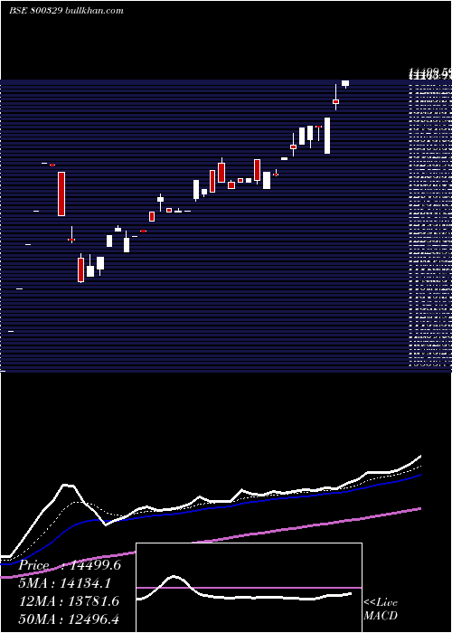 | Date | Closing | Open | Range | Volume | Wed 24 December 2025 | 14499.59 (2.11%) | 14440.00 | 14400.20 - 14499.59 | 2.5634 times | Tue 23 December 2025 | 14200.10 (1.43%) | 14249.40 | 14115.20 - 14443.80 | 1.493 times | Mon 22 December 2025 | 13999.80 (0.87%) | 13532.61 | 13532.61 - 13999.80 | 0.5352 times | Fri 19 December 2025 | 13879.60 (-0.15%) | 13899.99 | 13700.00 - 13899.99 | 0.3944 times | Thu 18 December 2025 | 13899.99 (0.18%) | 13711.02 | 13605.00 - 13899.99 | 0.5634 times | Wed 17 December 2025 | 13874.95 (2.02%) | 13650.00 | 13650.00 - 13874.95 | 0.0845 times | Tue 16 December 2025 | 13600.00 (0.92%) | 13648.00 | 13501.01 - 13799.99 | 0.4789 times | Mon 15 December 2025 | 13475.92 (1.7%) | 13449.99 | 13449.99 - 13475.92 | 1.3803 times | Thu 11 December 2025 | 13250.12 (-0.26%) | 13255.01 | 13232.01 - 13319.99 | 0.4225 times | Wed 10 December 2025 | 13284.99 (0.8%) | 13061.00 | 13061.00 - 13285.00 | 2.0845 times | Tue 09 December 2025 | 13180.00 (-0.15%) | 13445.00 | 13125.00 - 13445.00 | 1.2676 times |