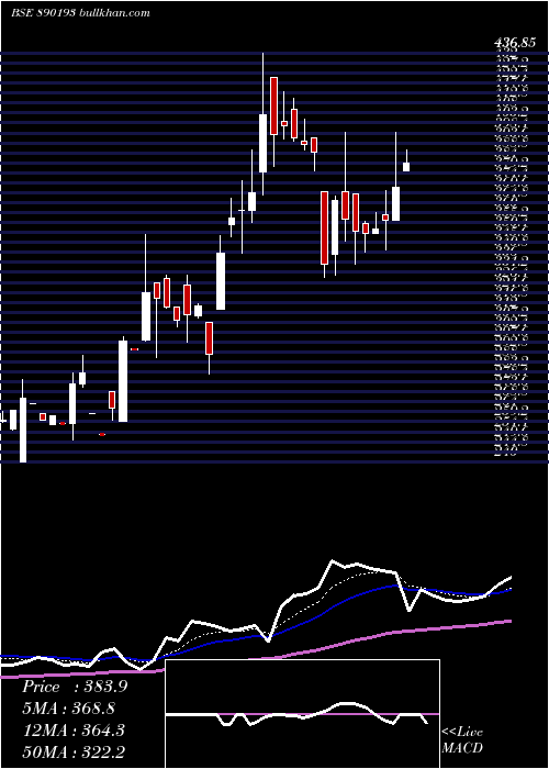 | Date | Closing | Open | Range | Volume | Fri 01 November 2024 | 383.85 (3.12%) | 380.00 | 380.00 - 390.00 | 1.5264 times | Thu 31 October 2024 | 372.25 (4.42%) | 356.50 | 356.50 - 398.65 | 1.4342 times | Wed 30 October 2024 | 356.50 (1.31%) | 359.00 | 342.00 - 370.80 | 0.8984 times | Tue 29 October 2024 | 351.90 (0.59%) | 350.05 | 350.00 - 360.00 | 0.4928 times | Mon 28 October 2024 | 349.85 (-0.41%) | 354.95 | 341.10 - 355.55 | 0.5334 times | Fri 25 October 2024 | 351.30 (-1.6%) | 369.00 | 334.95 - 369.00 | 0.3748 times | Thu 24 October 2024 | 357.00 (-2.45%) | 370.00 | 346.30 - 398.70 | 1.1392 times | Wed 23 October 2024 | 365.95 (9.16%) | 339.75 | 330.00 - 367.75 | 0.7669 times | Tue 22 October 2024 | 335.25 (-13.81%) | 370.00 | 329.00 - 370.00 | 2.7062 times | Mon 21 October 2024 | 388.95 (-0.97%) | 396.25 | 380.00 - 396.25 | 0.1278 times | Fri 18 October 2024 | 392.75 (-0.87%) | 394.25 | 390.00 - 405.00 | 0.4928 times |