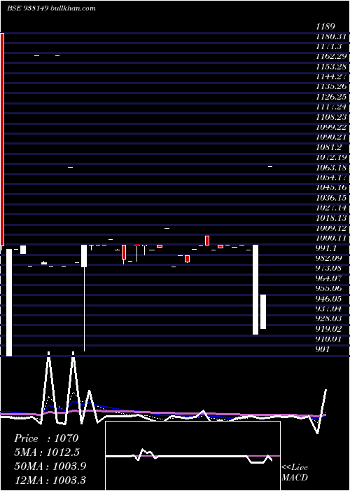 | Date | Closing | Open | Range | Volume | Tue 09 September 2025 | 1070.00 (7%) | 995.00 | 920.00 - 1070.00 | 0.9675 times | Thu 28 August 2025 | 1000.00 (0.49%) | 1000.00 | 997.01 - 1000.00 | 0.8217 times | Tue 22 July 2025 | 995.11 (-0.39%) | 1008.00 | 995.11 - 1008.00 | 0.1051 times | Mon 30 June 2025 | 999.00 (0.1%) | 1015.00 | 980.00 - 1015.00 | 0.4893 times | Mon 12 May 2025 | 998.00 (-0.2%) | 1000.00 | 991.20 - 1000.00 | 0.9111 times | Wed 30 April 2025 | 999.99 (0.02%) | 999.80 | 983.00 - 1004.95 | 2.0558 times | Fri 28 March 2025 | 999.80 (0.08%) | 901.00 | 901.00 - 1169.00 | 3.2899 times | Fri 28 February 2025 | 999.00 (2.56%) | 1167.00 | 976.00 - 1189.00 | 0.8233 times | Mon 06 January 2025 | 974.10 (-4.97%) | 994.25 | 974.10 - 994.25 | 0.1098 times | Tue 31 December 2024 | 1025.00 (3.02%) | 1025.00 | 973.06 - 1025.00 | 0.4265 times | Wed 27 November 2024 | 995.00 (0.51%) | 999.00 | 971.00 - 1000.00 | 0.2446 times |