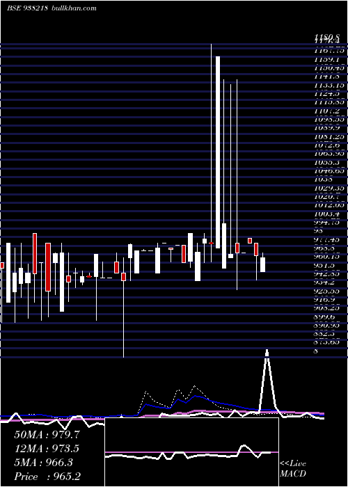 | Date | Closing | Open | Range | Volume | Fri 12 December 2025 | 980.00 (-0.51%) | 980.00 | 980.00 - 980.00 | 0.0623 times | Mon 08 December 2025 | 985.00 (1.55%) | 985.00 | 985.00 - 985.00 | 0.2491 times | Wed 03 December 2025 | 970.00 (0%) | 970.00 | 970.00 - 970.00 | 1.2453 times | Fri 28 November 2025 | 970.00 (0%) | 970.00 | 970.00 - 970.00 | 0.2366 times | Thu 27 November 2025 | 970.00 (-1.22%) | 965.00 | 933.00 - 970.00 | 2.9514 times | Wed 26 November 2025 | 982.00 (0.2%) | 1145.00 | 982.00 - 1145.00 | 0.0249 times | Mon 24 November 2025 | 980.00 (1.14%) | 980.00 | 980.00 - 980.00 | 1.2453 times | Fri 21 November 2025 | 969.00 (0.4%) | 1140.00 | 969.00 - 1140.00 | 0.0249 times | Thu 20 November 2025 | 965.10 (-3.48%) | 965.10 | 965.10 - 965.10 | 3.9477 times | Fri 14 November 2025 | 999.90 (-12.67%) | 999.90 | 999.90 - 999.90 | 0.0125 times | Tue 11 November 2025 | 1145.00 (19.9%) | 956.25 | 955.00 - 1145.00 | 1.5318 times |