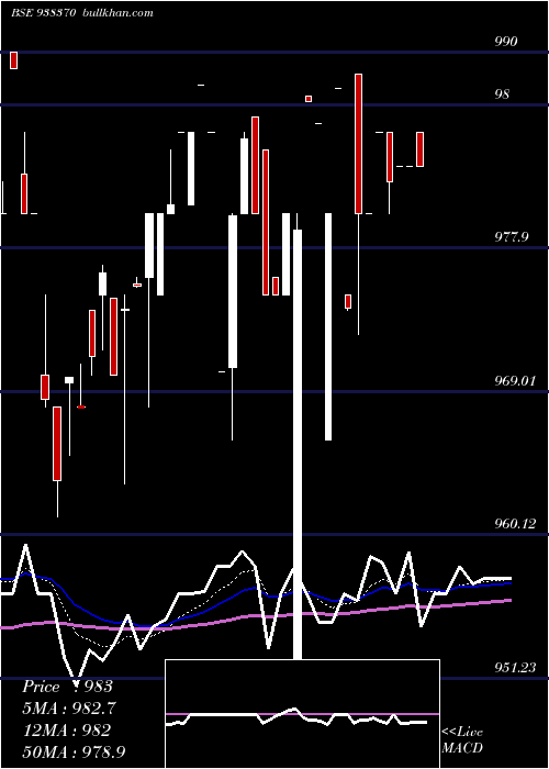 | Date | Closing | Open | Range | Volume | Wed 24 December 2025 | 983.00 (0%) | 985.00 | 983.00 - 985.00 | 1.0718 times | Mon 22 December 2025 | 983.00 (0%) | 983.00 | 983.00 - 983.00 | 0.5359 times | Fri 19 December 2025 | 983.00 (0.11%) | 983.00 | 983.00 - 983.00 | 0.6002 times | Thu 18 December 2025 | 981.96 (-0.31%) | 985.00 | 980.00 - 985.00 | 1.5756 times | Tue 16 December 2025 | 985.00 (0.51%) | 985.00 | 985.00 - 985.00 | 1.4577 times | Thu 11 December 2025 | 980.00 (0%) | 980.00 | 980.00 - 980.00 | 1.4362 times | Wed 10 December 2025 | 980.00 (0.6%) | 988.60 | 972.50 - 988.60 | 2.433 times | Tue 09 December 2025 | 974.20 (-1.38%) | 975.00 | 974.00 - 975.00 | 0.5359 times | Fri 05 December 2025 | 987.80 (0.8%) | 987.80 | 987.80 - 987.80 | 0.2144 times | Thu 04 December 2025 | 980.00 (-0.57%) | 966.00 | 966.00 - 980.00 | 0.1393 times | Wed 03 December 2025 | 985.59 (-0.14%) | 985.59 | 985.59 - 985.59 | 0.1072 times |