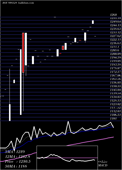 | Date | Closing | Open | Range | Volume | Fri 19 December 2025 | 1230.50 (-1.93%) | 1230.50 | 1230.50 - 1230.50 | 0.0047 times | Wed 03 December 2025 | 1254.68 (0.79%) | 1250.00 | 1250.00 - 1255.00 | 0.4696 times | Tue 02 December 2025 | 1244.80 (0.45%) | 1244.80 | 1244.80 - 1244.80 | 0.1376 times | Fri 28 November 2025 | 1239.20 (0.24%) | 1239.20 | 1239.20 - 1239.20 | 1.4706 times | Thu 27 November 2025 | 1236.20 (-0.35%) | 1224.20 | 1221.20 - 1236.20 | 5.9298 times | Mon 24 November 2025 | 1240.50 (1.33%) | 1240.50 | 1240.50 - 1240.50 | 0.759 times | Thu 20 November 2025 | 1224.20 (0.25%) | 1224.50 | 1224.20 - 1224.50 | 0.9488 times | Thu 13 November 2025 | 1221.20 (-0.55%) | 1221.20 | 1221.20 - 1221.20 | 0.0474 times | Mon 10 November 2025 | 1228.00 (0.56%) | 1221.80 | 1221.80 - 1228.00 | 0.0949 times | Fri 31 October 2025 | 1221.20 (0.16%) | 1221.20 | 1221.20 - 1221.20 | 0.1376 times | Wed 29 October 2025 | 1219.20 (-0.88%) | 1219.20 | 1219.20 - 1219.20 | 0.0047 times |