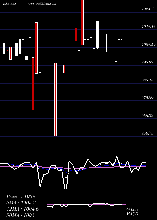| Date | Closing | Open | Range | Volume | Wed 31 December 2025 | 1010.00 (0.1%) | 1188.00 | 1010.00 - 1188.00 | 1.1985 times | Wed 24 December 2025 | 1009.00 (0%) | 1009.00 | 1009.00 - 1009.00 | 0.0187 times | Tue 23 December 2025 | 1009.00 (1.2%) | 1009.00 | 1009.00 - 1009.00 | 0.1873 times | Thu 18 December 2025 | 997.05 (-0.3%) | 997.05 | 997.05 - 997.05 | 0.0187 times | Wed 17 December 2025 | 1000.00 (0.6%) | 1000.00 | 1000.00 - 1000.00 | 3.7453 times | Tue 09 December 2025 | 994.00 (-1.78%) | 994.00 | 994.00 - 994.00 | 0.5431 times | Mon 08 December 2025 | 1011.99 (1%) | 1002.02 | 1002.00 - 1011.99 | 0.9551 times | Thu 04 December 2025 | 1002.01 (0%) | 1002.15 | 1002.01 - 1002.15 | 0.7678 times | Wed 03 December 2025 | 1002.00 (-1.67%) | 1002.00 | 1002.00 - 1002.00 | 0.0375 times | Tue 02 December 2025 | 1019.00 (1.49%) | 1004.50 | 1004.00 - 1019.00 | 2.5281 times | Mon 01 December 2025 | 1004.00 (-0.59%) | 1004.00 | 1004.00 - 1004.00 | 1.8727 times |