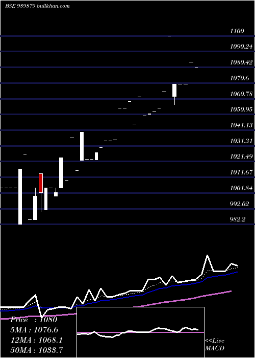 | Date | Closing | Open | Range | Volume | Mon 15 December 2025 | 1080.00 (-0.35%) | 1080.00 | 1080.00 - 1080.00 | 0.0496 times | Fri 14 November 2025 | 1083.80 (1.29%) | 1083.80 | 1083.80 - 1083.80 | 1.2027 times | Tue 11 November 2025 | 1070.00 (0%) | 1070.00 | 1070.00 - 1070.00 | 0.9609 times | Mon 10 November 2025 | 1070.00 (0%) | 1070.00 | 1070.00 - 1070.00 | 1.5189 times | Thu 06 November 2025 | 1070.00 (-2.73%) | 1062.22 | 1057.00 - 1070.00 | 4.0298 times | Tue 04 November 2025 | 1100.00 (3.29%) | 1100.00 | 1100.00 - 1100.00 | 0.248 times | Tue 21 October 2025 | 1065.00 (0.95%) | 1065.00 | 1065.00 - 1065.00 | 1.2399 times | Fri 03 October 2025 | 1055.00 (0.19%) | 1055.00 | 1055.00 - 1055.00 | 0.062 times | Tue 30 September 2025 | 1053.00 (0.17%) | 1053.00 | 1053.00 - 1053.00 | 0.31 times | Mon 22 September 2025 | 1051.21 (0.12%) | 1051.20 | 1051.20 - 1051.21 | 0.3782 times | Mon 15 September 2025 | 1050.00 (-1.13%) | 1050.00 | 1050.00 - 1050.00 | 0.31 times |
