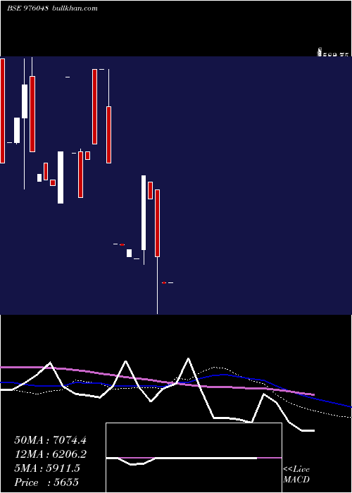 | Date | Closing | Open | Range | Volume | Mon 22 December 2025 | 5655.00 (0%) | 5655.00 | 5655.00 - 5655.00 | 0.3846 times | Thu 18 December 2025 | 5655.00 (-0.02%) | 5655.00 | 5655.00 - 5655.00 | 1.5385 times | Tue 16 December 2025 | 5656.00 (-5.73%) | 5656.00 | 5656.00 - 5656.00 | 0.3846 times | Fri 12 December 2025 | 6000.00 (-13.03%) | 6000.00 | 5250.00 - 6000.00 | 3.8462 times | Thu 11 December 2025 | 6899.00 (1.83%) | 6899.00 | 6899.00 - 6899.00 | 1.1538 times | Thu 04 December 2025 | 6775.00 (-1.81%) | 6775.00 | 6775.00 - 6775.00 | 0.3846 times | Tue 02 December 2025 | 6900.00 (-1.4%) | 6900.00 | 6900.00 - 6900.00 | 0.7692 times | Mon 01 December 2025 | 6998.00 (-1.16%) | 6998.00 | 6998.00 - 6998.00 | 0.7692 times | Fri 28 November 2025 | 7080.00 (20%) | 7080.00 | 7080.00 - 7080.00 | 0.3846 times | Tue 25 November 2025 | 5900.00 (-3.28%) | 5900.00 | 5900.00 - 5900.00 | 0.3846 times | Mon 24 November 2025 | 6100.00 (2.09%) | 6100.00 | 6100.00 - 6100.00 | 1.1538 times |
