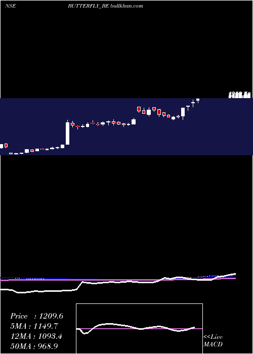 Btrfly Gandhi BUTTERFLY_BE WideScreen charts, DMA,SMA,EMA technical analysis, forecast prediction, by indicators ADX,MACD,RSI,CCI NSE stock exchange