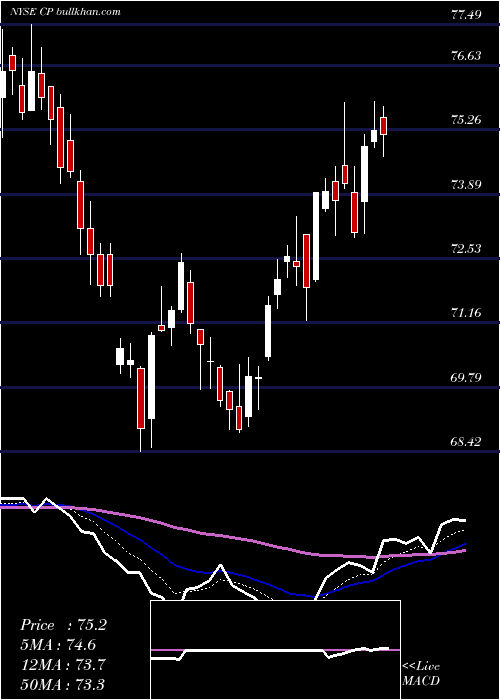 CanadianPacific CP full analysis,charts,indicators,moving averages,SMA,DMA,EMA,ADX,MACD,RSI