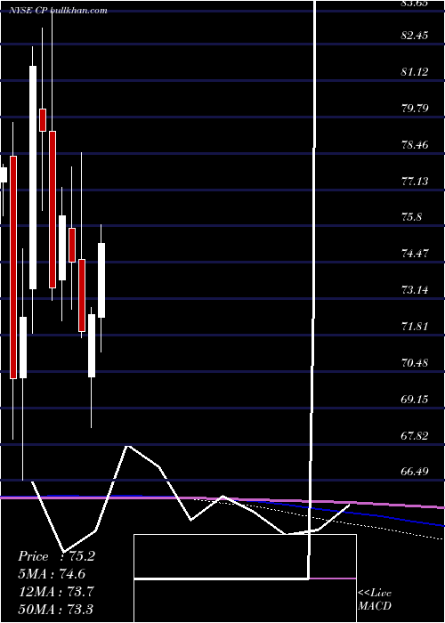 Strong Daily Stock price targets for CanadianPacific CP are 74.4 and 75.46